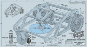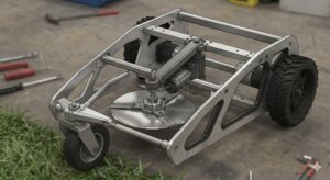 To test the AI’s potential, I asked Google Gemini to design a chassis and generate design prints. The initial results from a simple prompt were remarkably promising for a first pass. I then requested an engineering drawing with dimensions based on a 10-inch cutting disk, similar to the proven swing-blade designs found on Husqvarna Automower products. These swing blade systems have been used for years to reduce the chance of injury to people and animals.